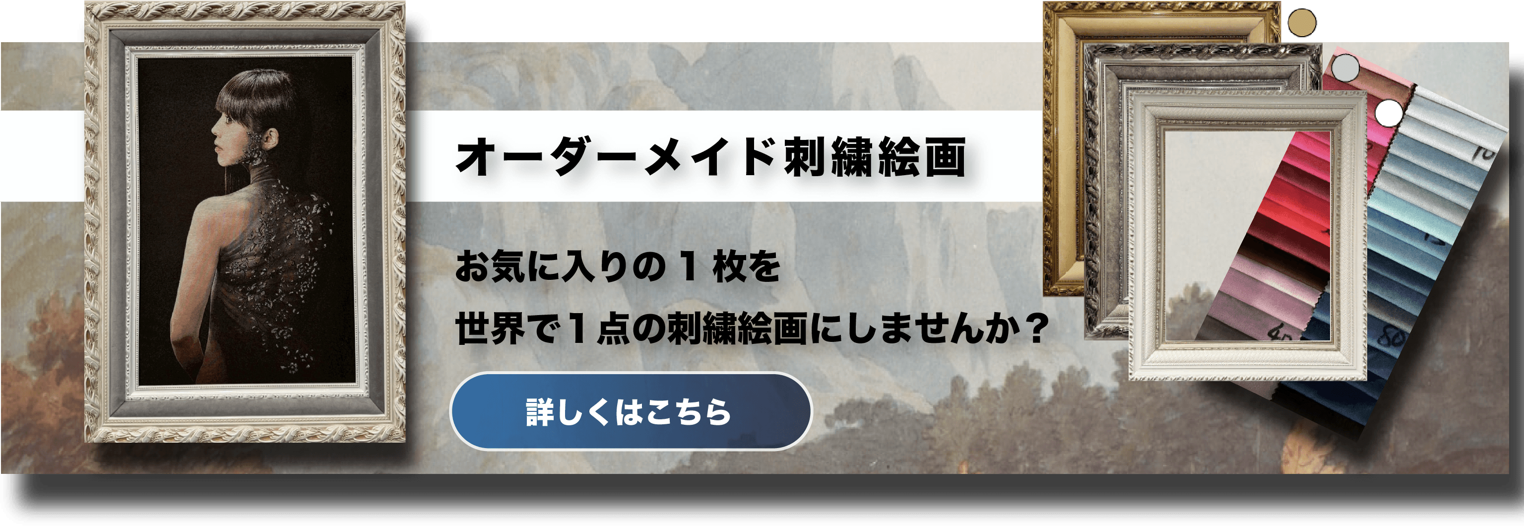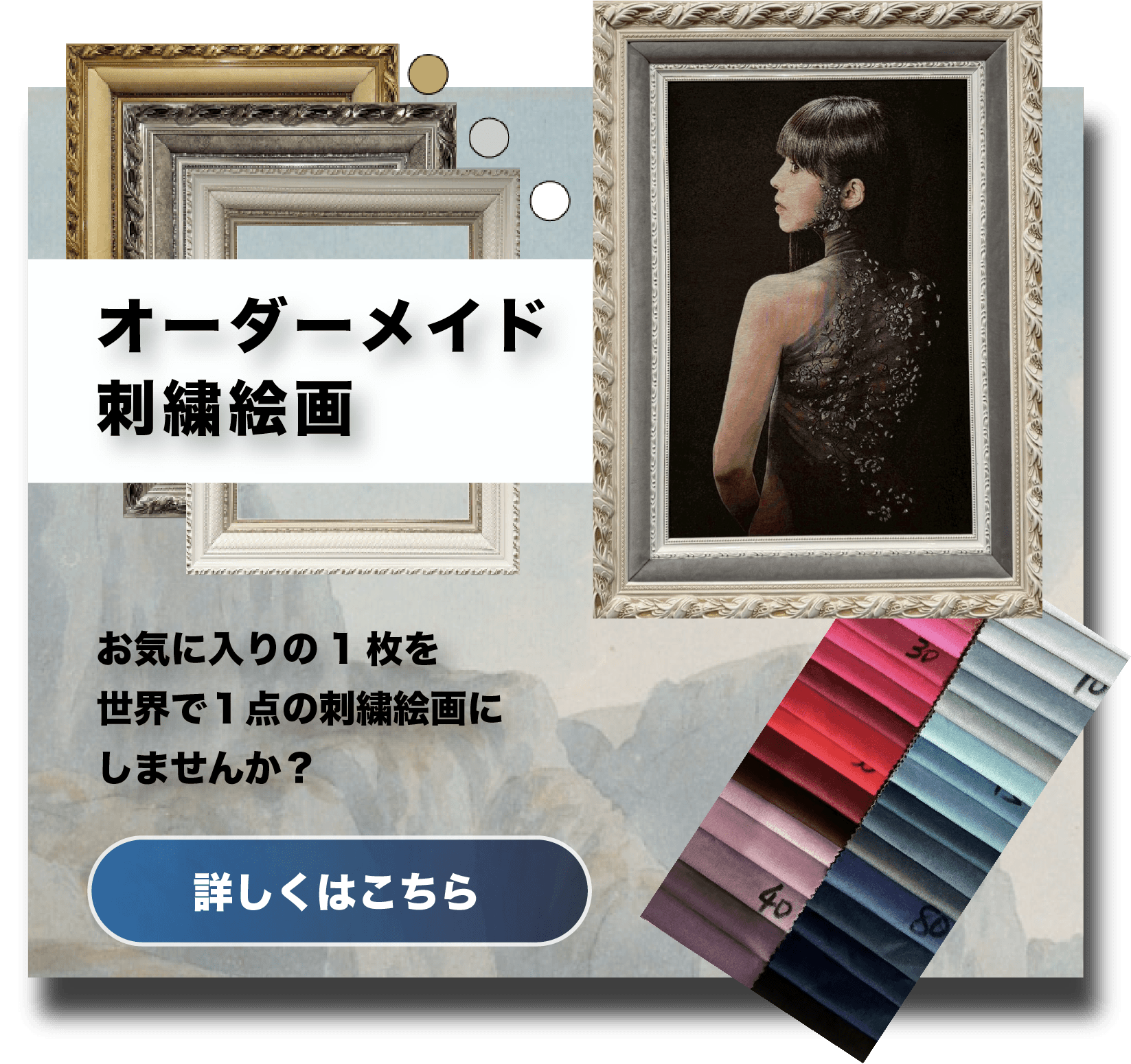 また、"刺繍絵画"という特別感、立体感、長期保存可能な強度も特徴です。